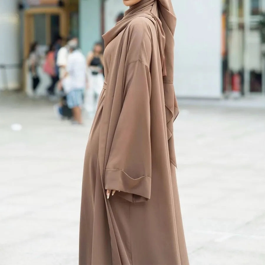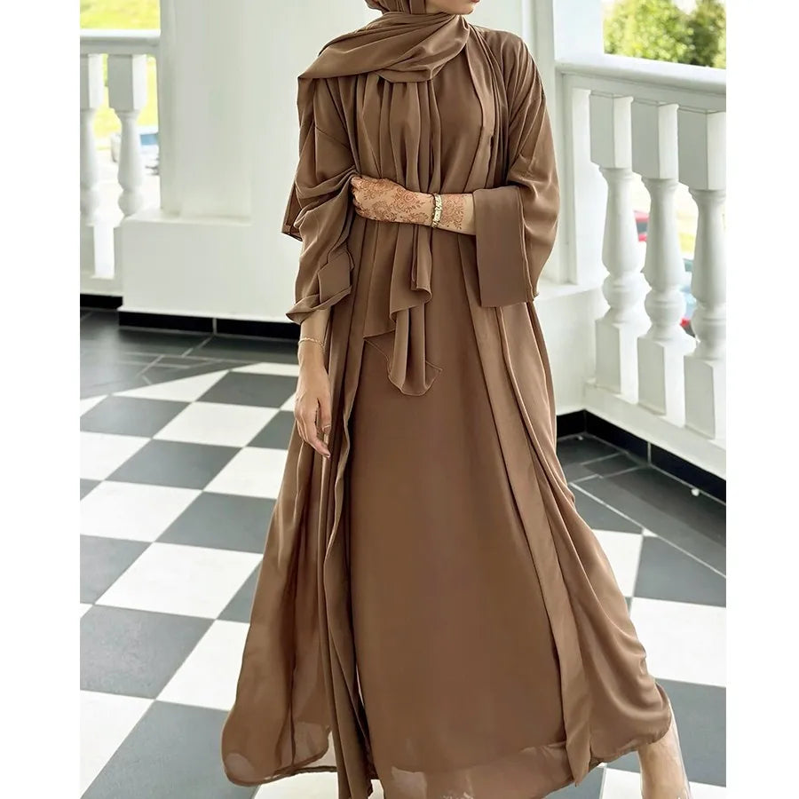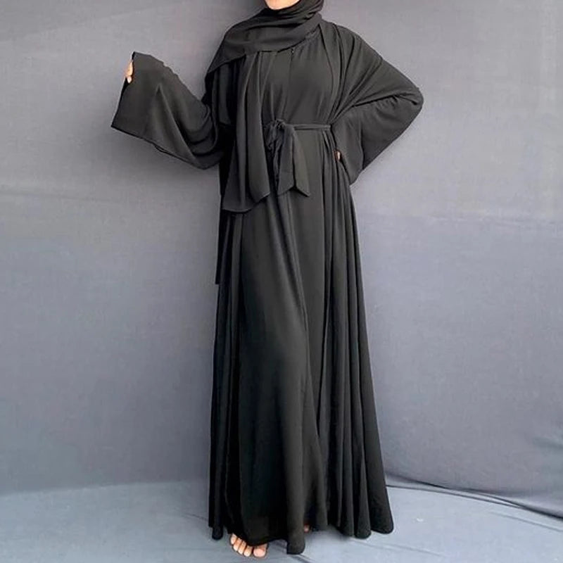 Flowy, classy, and effortlessly put-together — this 3-piece chiffon abaya set is your go-to for any modest fashion moment. With a front-open design and matching inner and hijab, it’s made to elevate your style without compromising on comfort.