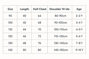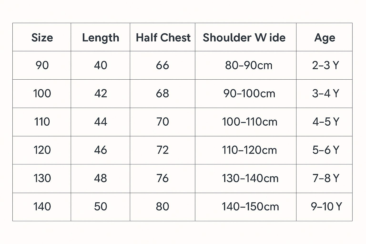| Size | 2 Years, 3 Years, 4 Years, 5 Years, 6 Years, 7 Years, 8 Years, 9 Years, 10 Years |