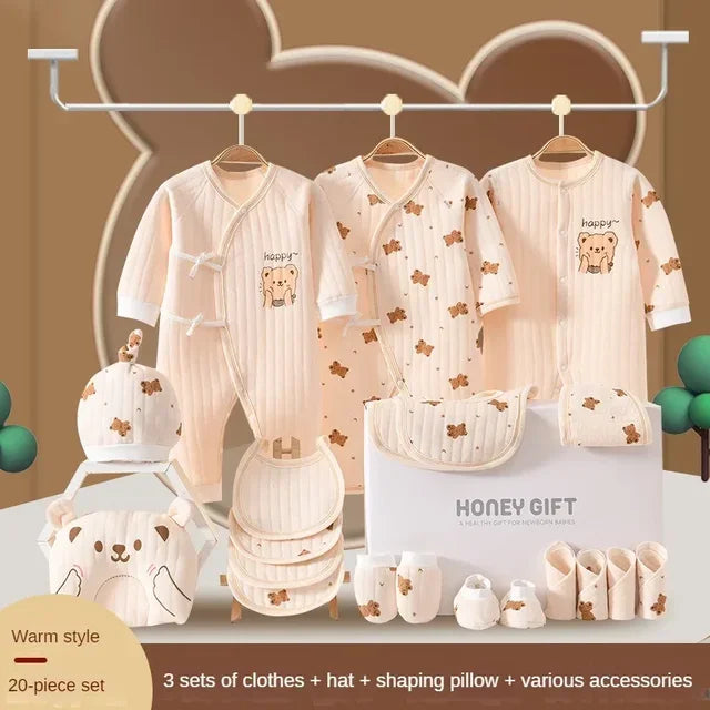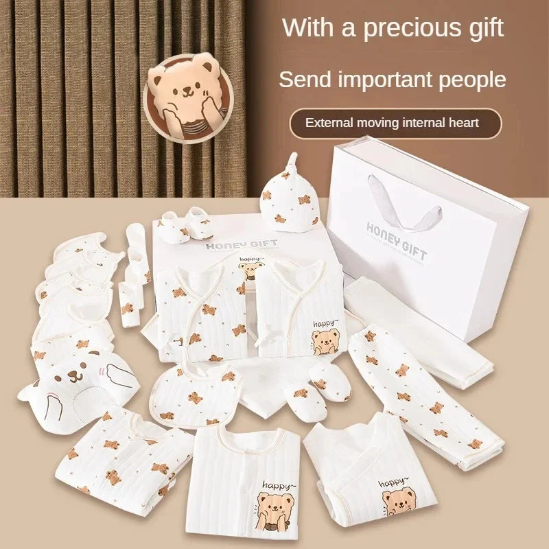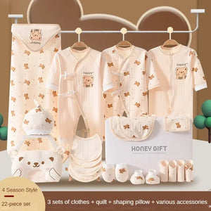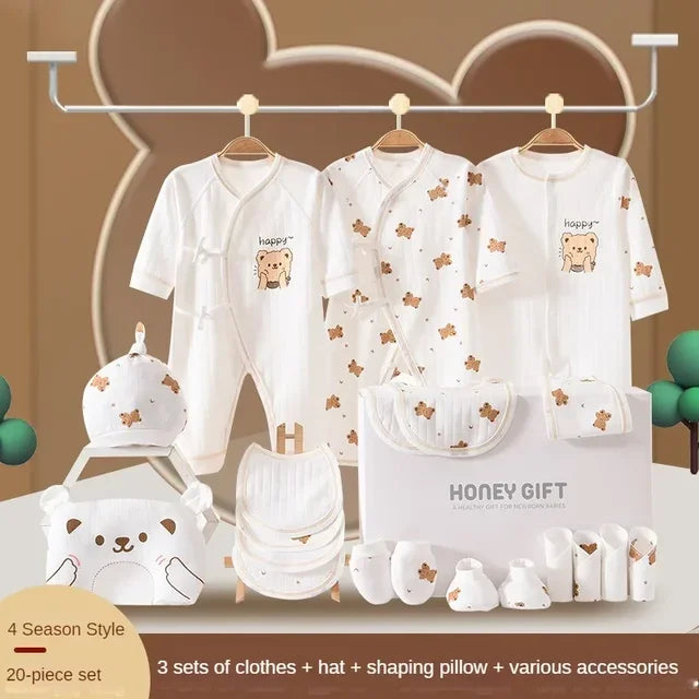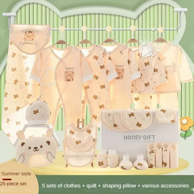 Gift your newborn ultimate comfort with this Luxury Unisex Newborn Baby Jumpsuit & Outfit Set, a versatile 20/22/26-piece collection designed for infants. Crafted from 100% cotton, this breathable set features a playful cartoon pattern and European-American style, perfect for all seasons. The O-neck pullover design with full sleeves ensures easy dressing and cozy warmth, ideal for naps, playtime, or family outings. This stylish, soft set is a perfect infant gift, offering parents a durable, charming wardrobe solution that keeps babies comfortable and adorable year-round.