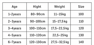| Size | 2 Years, 3 Years, 4 Years, 5 Years, 6 Years, 7 Years |