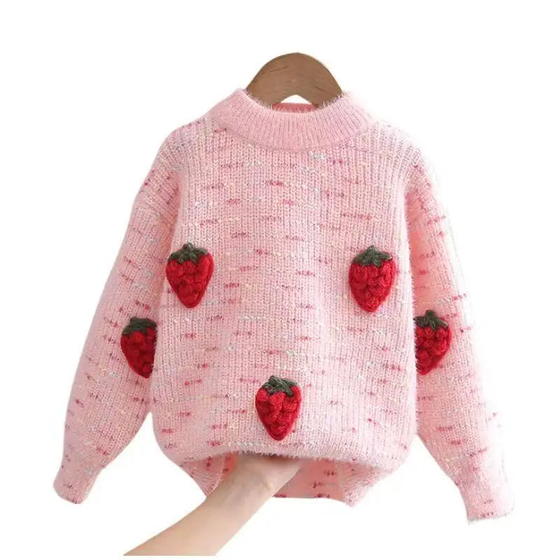- Design: Pullover sweater with roll neck and strawberry cartoon pattern