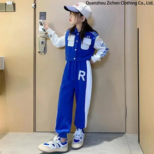 Elevate your girl's active wardrobe with this Korean Style Girls 2-Piece Sports Set, a trendy baseball jacket and pants outfit designed for comfort and style in autumn and beyond. Made from lightweight, 100% polyester, this set features a vibrant letter print pattern and modern sporty silhouette, offering breathable flexibility for school, sports, or casual play. The smooth fabric is durable and easy to wash, ensuring it holds up to daily adventures while keeping her cool and confident. Perfect for playground fun or weekend outings, this set blends fashion and function for girls aged 4-14.