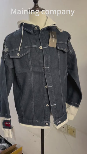 Rock bold street style with this men’s hip hop denim bomber jacket, featuring a striped pattern and cozy hood. Its knitted weave and regular fit offer versatile comfort for any casual occasion.