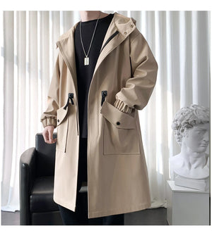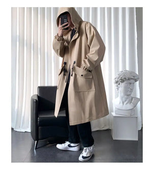 Stay warm and stylish this winter with this men’s hooded long trench coat, designed for comfort and modern elegance. Crafted from a breathable polyester-cotton blend with a worsted, polished finish, this overcoat features a zipper closure and a printed pattern for a distinctive look. Anti-wrinkle, quick-dry, and anti-shrink properties ensure lasting wear, while seamless fusing adds a sleek fit. Perfect for daily commutes or chilly outings, pair with scarves or boots for a polished, versatile winter ensemble.