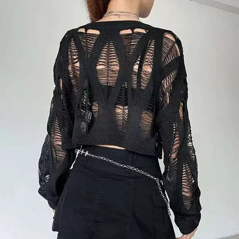 Keep it light and effortlessly stylish with this thin knitted mesh pullover. Designed with a relaxed, loose fit and breathable mesh texture, it’s perfect for layering or wearing on its own. The classic crew neck and short length give it a modern yet vintage-inspired feel, making it a versatile staple for any wardrobe.