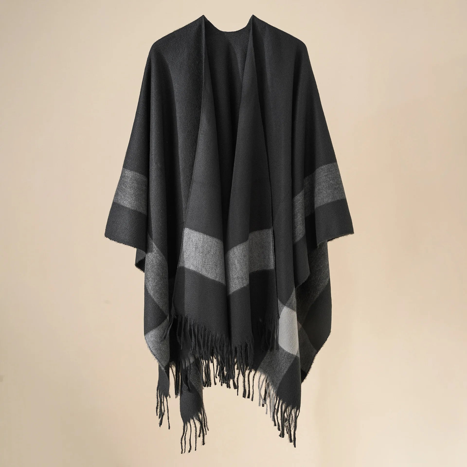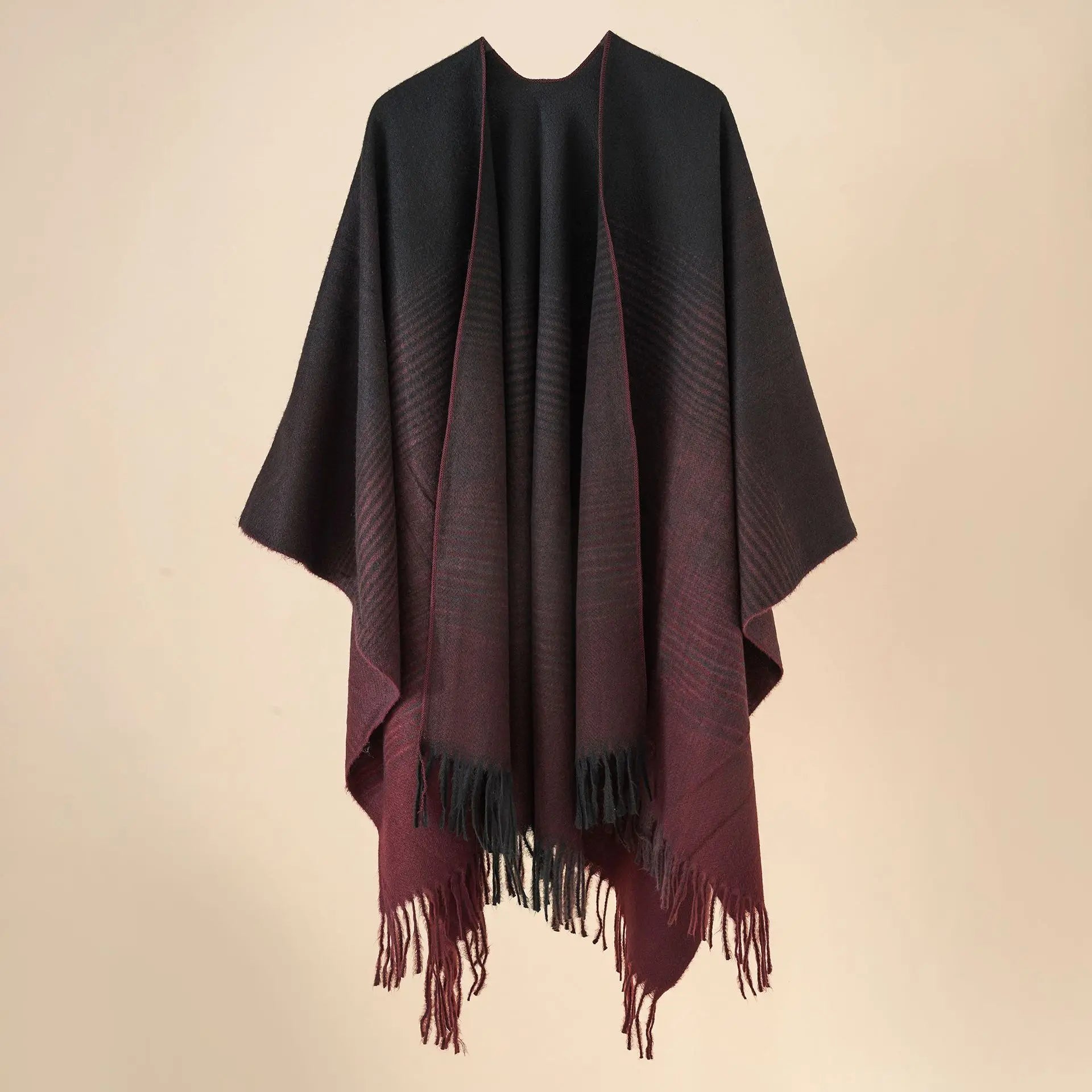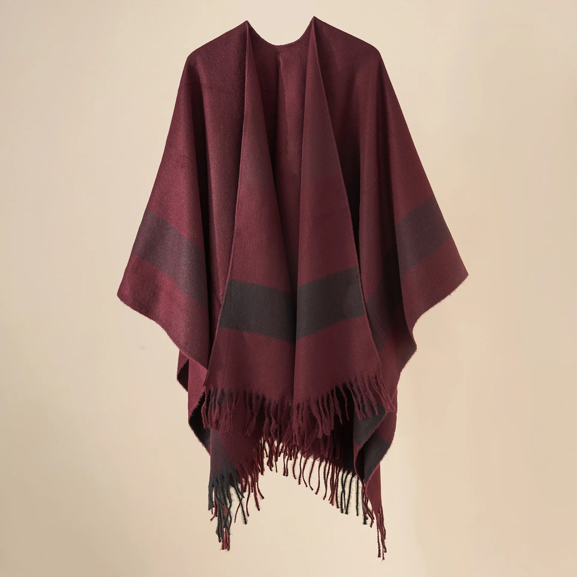 Layer up in effortless boho style with this women’s open-front poncho. Featuring a relaxed fit and long length, it’s the perfect piece for cozy autumn days. Made with breathable, wrinkle-resistant knit fabric, this poncho drapes beautifully while keeping you comfortable and chic.
