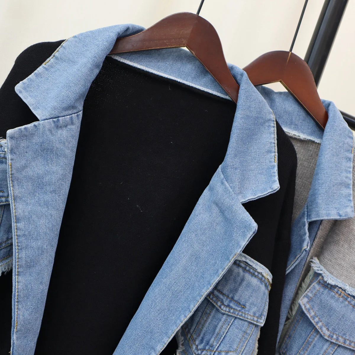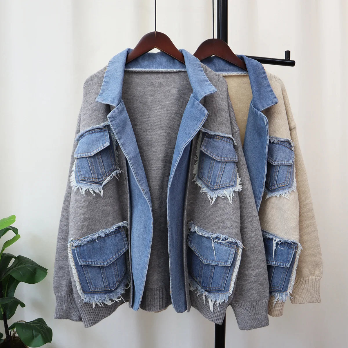 Give your wardrobe a fresh twist with this women’s denim jacket featuring a spliced sweater design. Blending classic denim with cozy knit details, this versatile jacket offers a relaxed, loose fit that’s perfect for layering. Its single-breasted closure and casual styling make it easy to pair with everything from jeans to dresses, creating a look that’s both modern and comfortable.