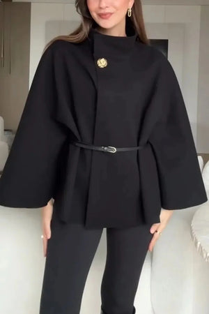 Embrace refined style with this women’s elegant cape jacket, featuring a chic waistband and windproof design. Perfect for fall, winter, and spring, its cozy cotton lining ensures warmth and sophistication for any occasion.