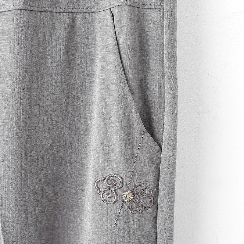 Step into effortless style with these women’s straight-leg pants, designed for casual comfort and timeless appeal. Crafted from a soft cotton-tencel blend with a worsted knit finish, these pants feature an anti-pilling fabric that stays smooth and polished wear after wear. Delicate embroidery and a subtle logo at the waist add a refined, artisanal touch, making them perfect for everyday outings or relaxed autumn looks. Pair with tops or sweaters for a versatile, laid-back wardrobe staple.