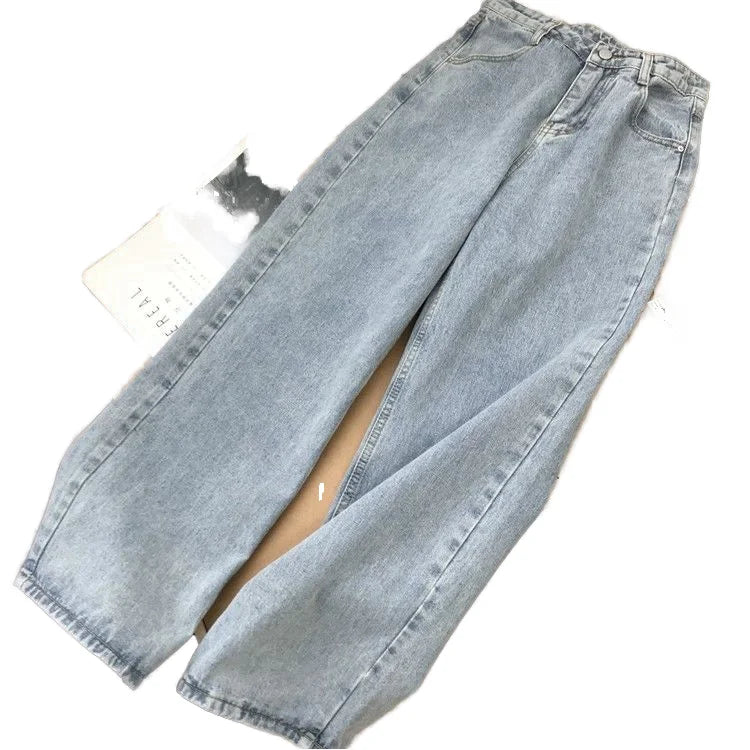 Embrace retro vibes with these women’s high-waist wide-leg jeans, perfect for summer. Their anti-wrinkle terylene fabric and loose, destroy-wash design offer a relaxed, vintage look with effortless comfort.