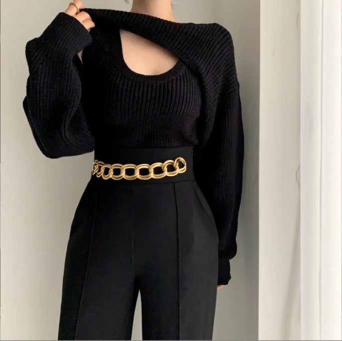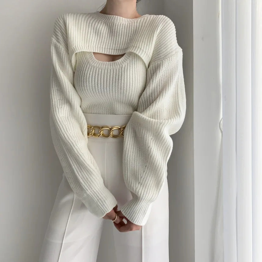 Stay chic and cozy with this women’s 2-piece knitted sweater set in timeless beige and black. Perfect for fall and winter, its windproof design and stylish batwing sleeves elevate any outfit. Ideal for layering across seasons.