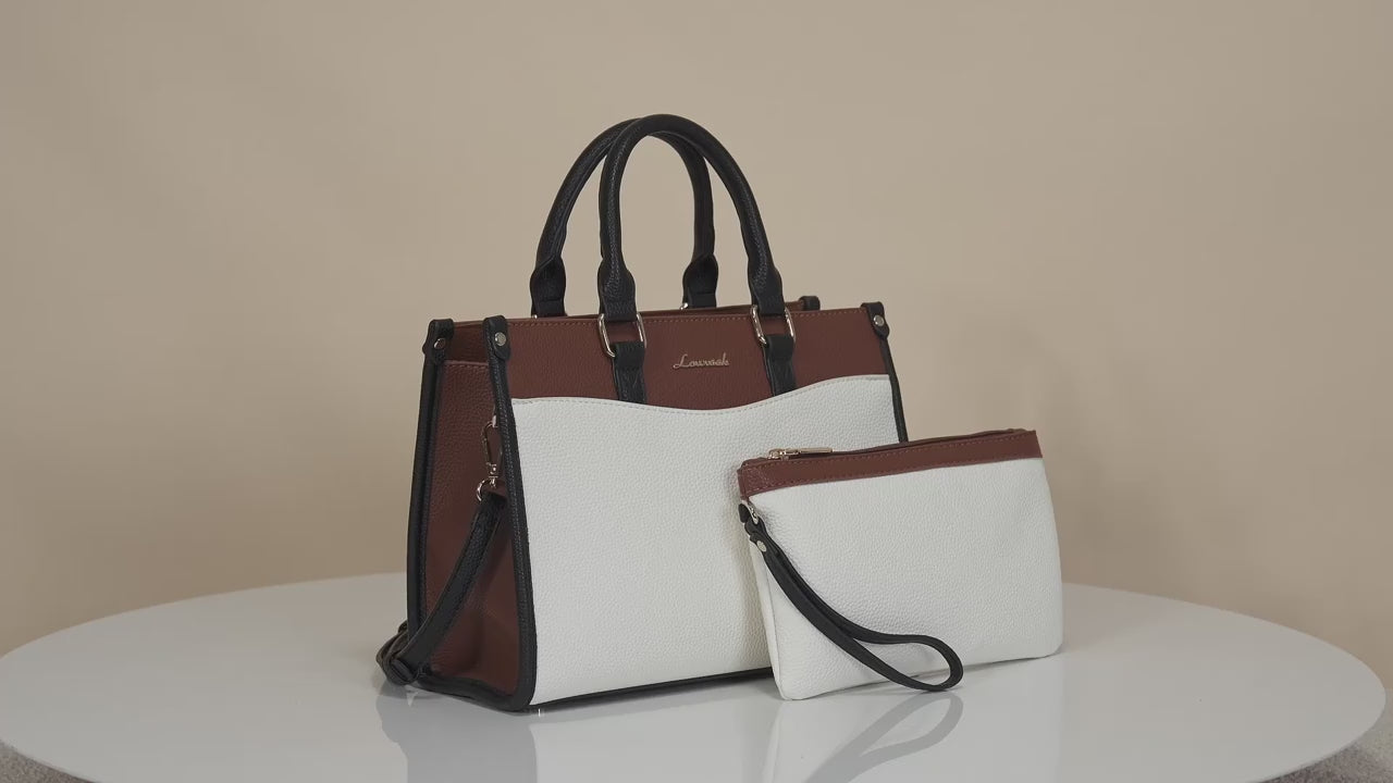 - Design: Fashion-forward tote with single handle and zipper/hasp closure