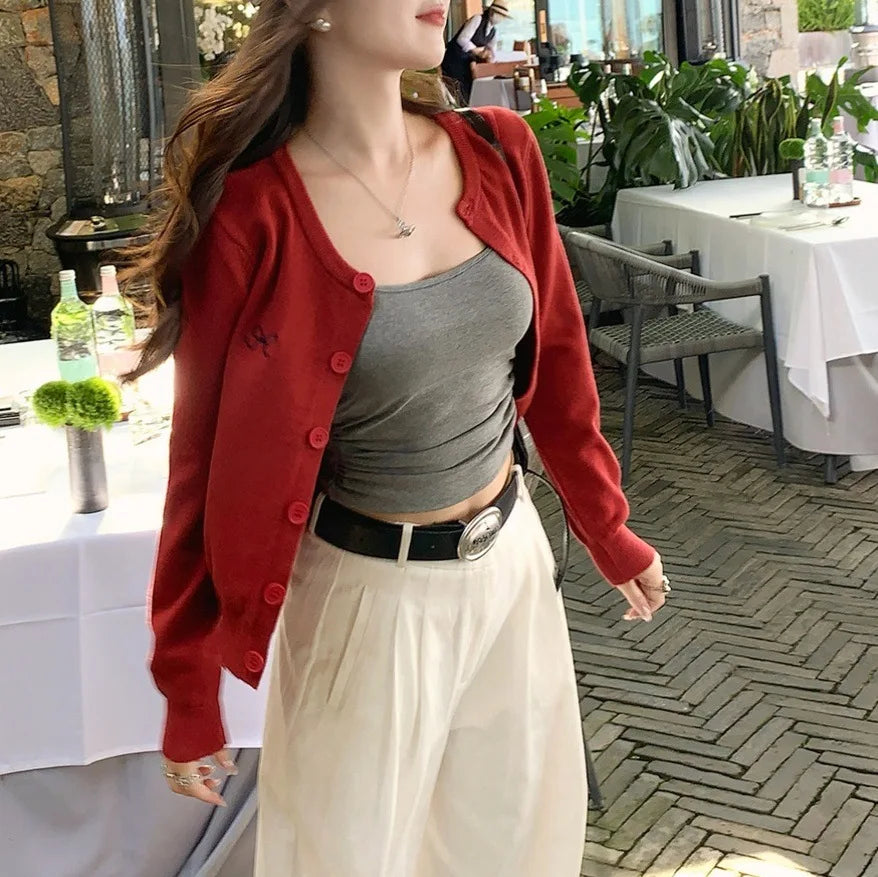 - Design: Open front cardigan with single-breasted closure