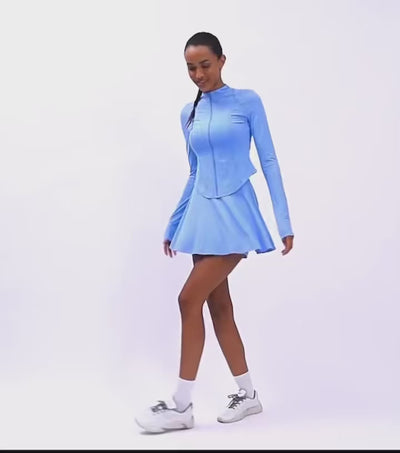 • Slim-fit jacket and high-waist dress for a flattering, active look