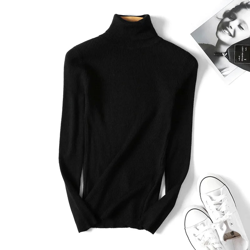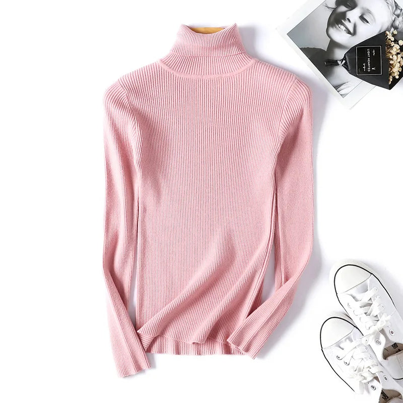 Women’s Turtleneck Color Block Knitted Pullover Sweater