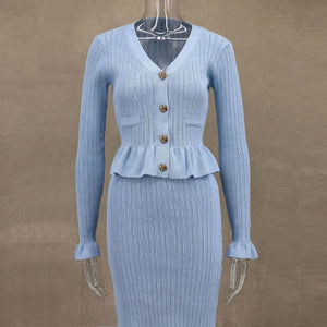 Embrace elegant winter style with this women’s two-piece maxi dress set, featuring a V-neck and England-inspired design. Its anti-wrinkle spandex-polyester blend ensures a comfortable, polished look for chilly days.