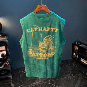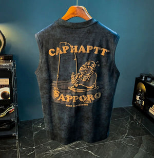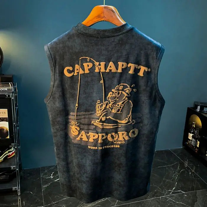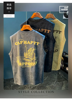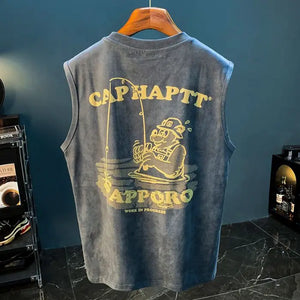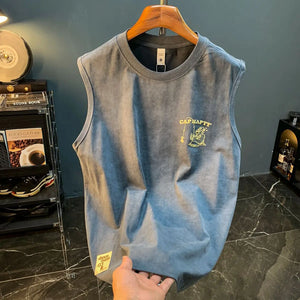 This retro sleeveless fitness shirt isn’t just for the gym — it’s for the streets, the mirror selfies, and everything in between. Made from thick 240GSM cotton, it brings that heavyweight feel you want with the breathability you need. The bold graphic print delivers vintage energy, while the oversized cut keeps things loose and confidence-level maxed.