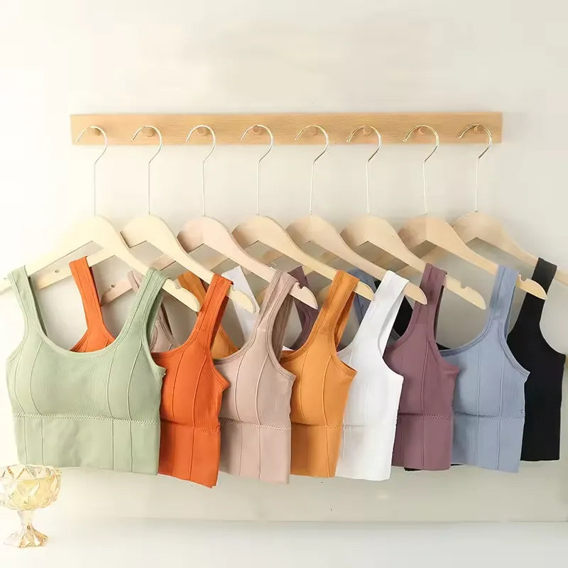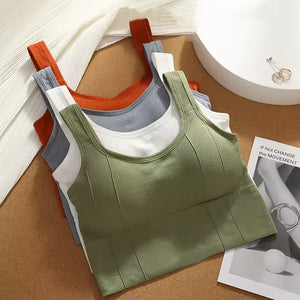 Sports Women Crop Top Beauty Back Tank Top Padded Bra Casual Slim Streetwear Female Vest Underwear Women Camisole Removable Pads