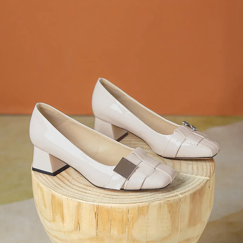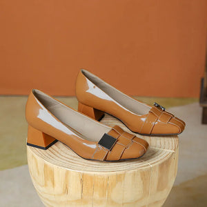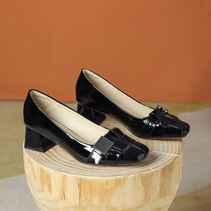For the girlies who mean business but never compromise on style—these Square Toe Pumps are your new wardrobe MVP. Featuring a glossy patent leather upper and a classy square buckle, they blend vintage vibes with modern elegance. Slip into comfort with luxe sheepskin lining and a block heel that’s walk-all-day approved.