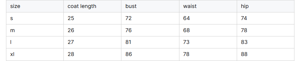 S, M, L, XL |