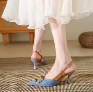 Stylish Women's Point Toe Heel Shoes Hard-Wearing and On-Trend Slip-On Denim Cloth with Heel Ladies Heel Shoes