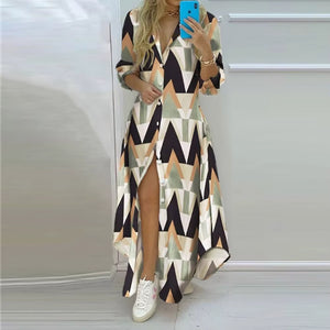 Summer Fashion Elegant Women's Button Shirt Long Skirt Women's Casual Dresses Floral Dress