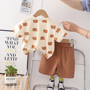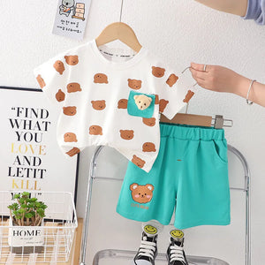 - Includes: Crewneck short-sleeve T-shirt + Elastic waist shorts