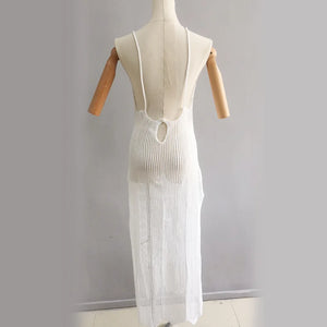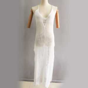 V-Neck Crochet Maxi Dress Backless Beach Cover-Up