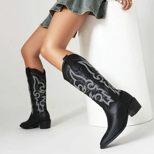 Women Boots Knee High Boots Ladies low heels cowboy shoes for winter season