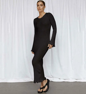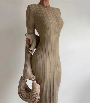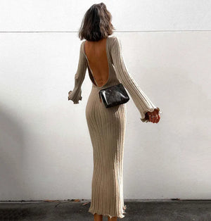 Embrace autumn elegance with this women’s backless knitted maxi dress, designed for a stunning, slim-fit silhouette. Crafted from breathable acrylic with a yarn-dyed finish, this dress features a bold backless design, flare sleeves with ruffles, and a classic O-neck for a perfect blend of sophistication and casual charm. The bodycon fit and natural waistline flatter your figure, making it ideal for date nights, casual outings, or semi-formal events. Pair with heels or boots for a versatile, eye-catching look that shines all season.
