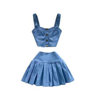 Women’s Denim Full-Sleeve Skirt Set