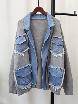 Give your wardrobe a fresh twist with this women’s denim jacket featuring a spliced sweater design. Blending classic denim with cozy knit details, this versatile jacket offers a relaxed, loose fit that’s perfect for layering. Its single-breasted closure and casual styling make it easy to pair with everything from jeans to dresses, creating a look that’s both modern and comfortable.
