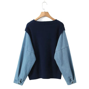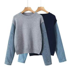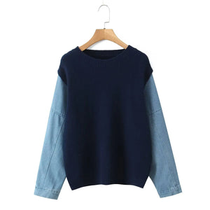 Women’s Denim Sleeve Knitted Pullover Sweater