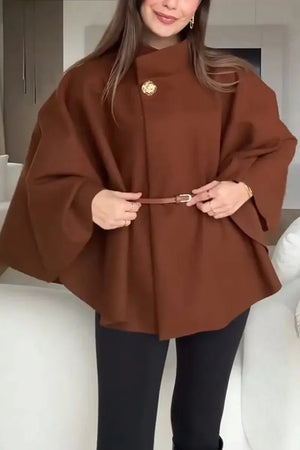 Embrace refined style with this women’s elegant cape jacket, featuring a chic waistband and windproof design. Perfect for fall, winter, and spring, its cozy cotton lining ensures warmth and sophistication for any occasion.