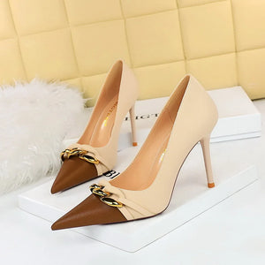 Women’s PU Metal Chain Decor Heels