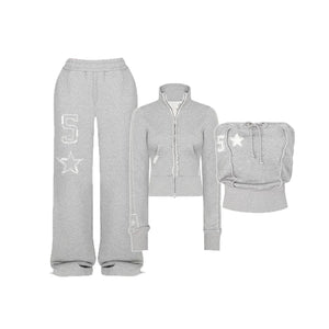 Design: 3-piece set with O-neck tops for a sweet, daily wear vibe