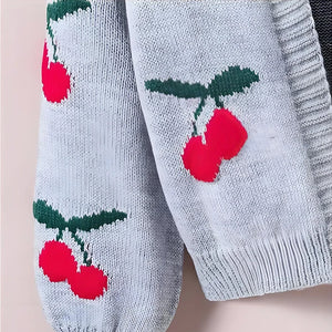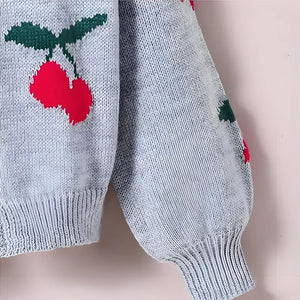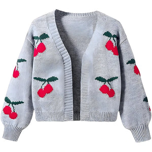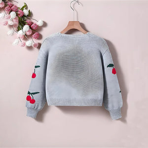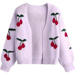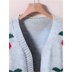 Women’s V-Neck Cherry Pattern Knitted Cardigan