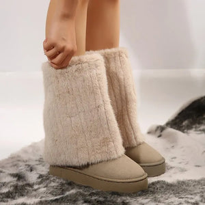 Women’s Velvet Plush Mid-Sleeve Suede Boots