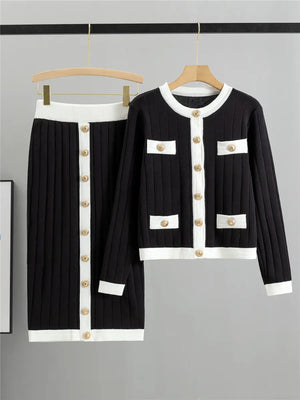 Stay stylish and comfortable with this effortlessly chic two-piece set. Featuring a breathable knitted cardigan paired with a loose midi skirt, this outfit blends sophistication with casual ease. Perfect for high-street fashion, everyday outings, or layering for an elevated look.