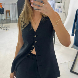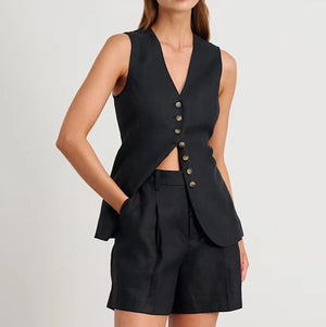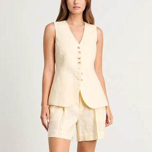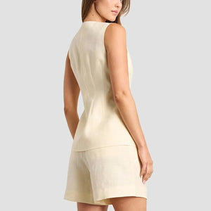 Women's Sleeveless Cotton-Linen Shorts Suit Set