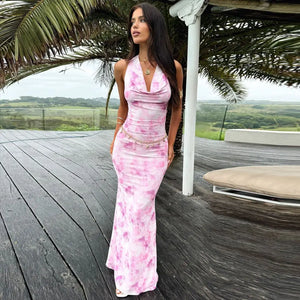 Women's V-Neck Sleeveless Printed Dress