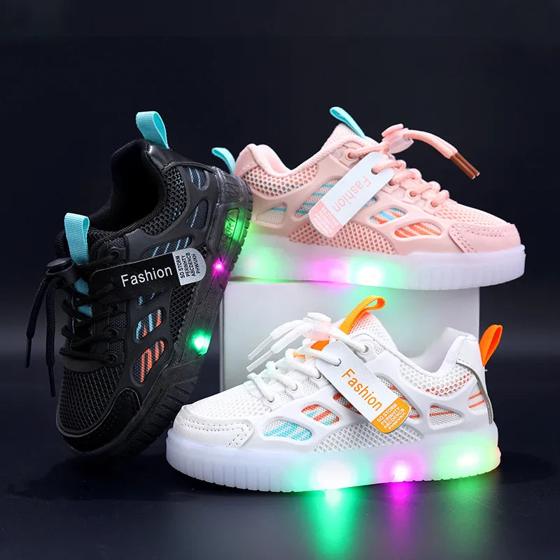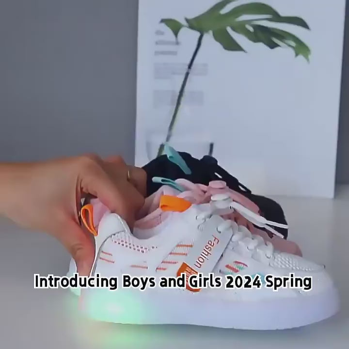 Light up their steps with these fun and stylish LED light-up sneakers, perfect for walking, skateboarding, or casual outings. Designed with a trendy mesh net upper and rubber outsole, these shoes are as comfortable as they are eye-catching.