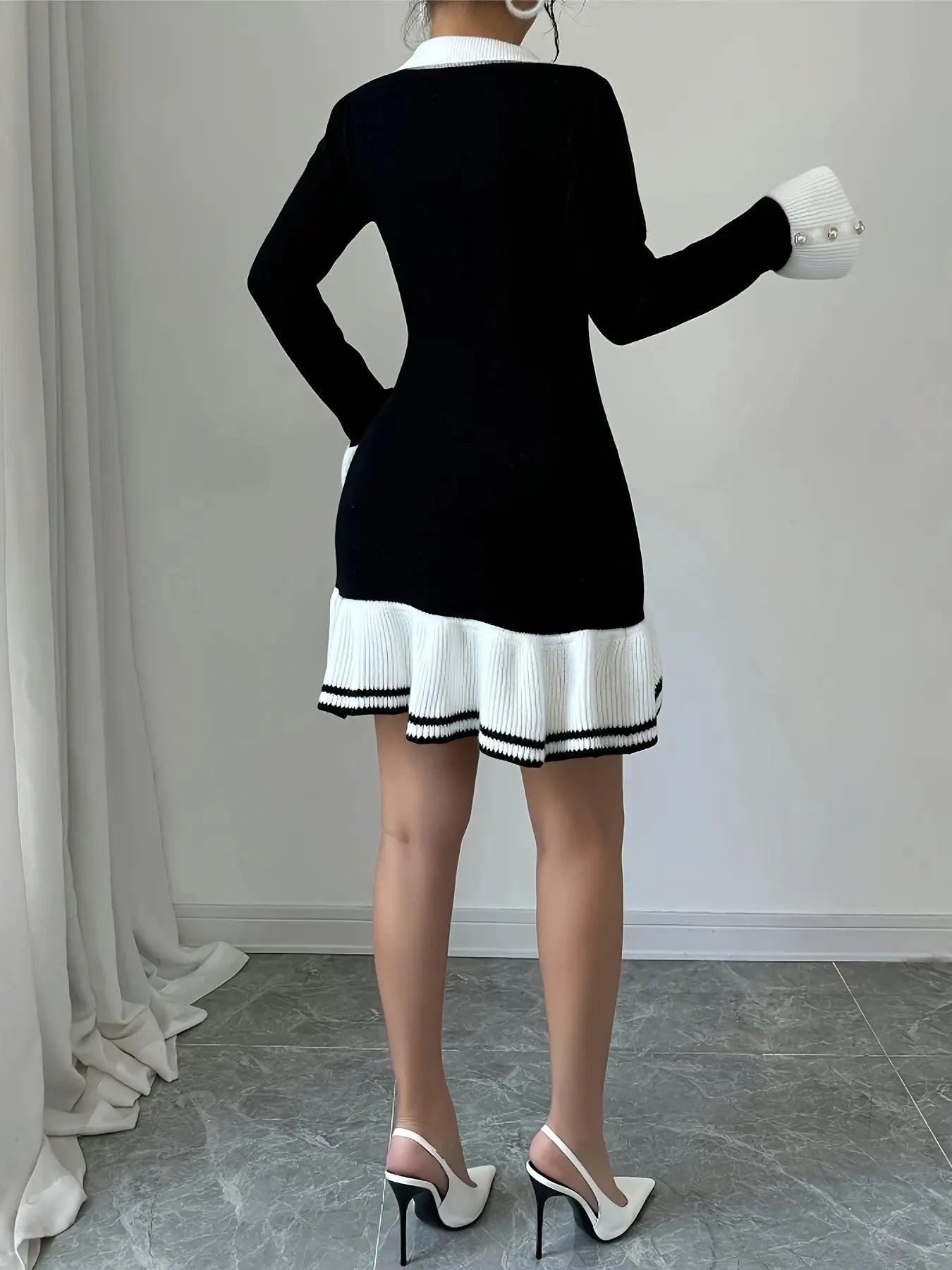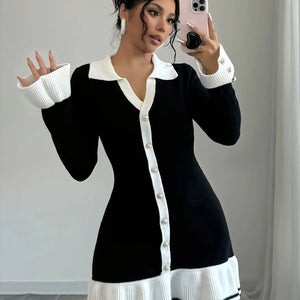 Casual V-Neck Dress with Ruffled Knit Skirt