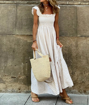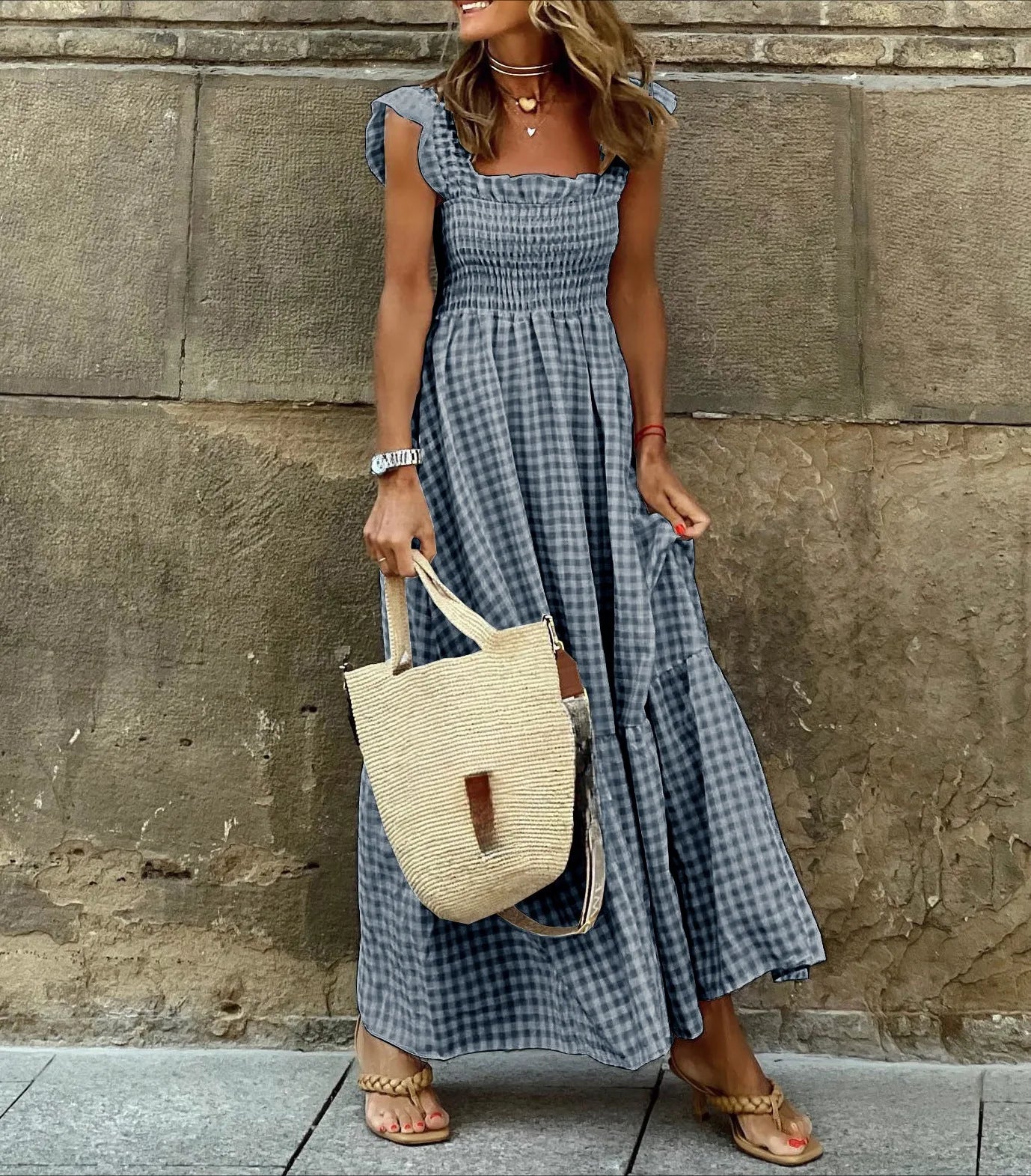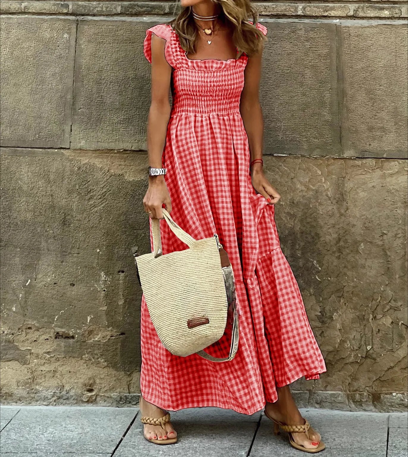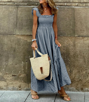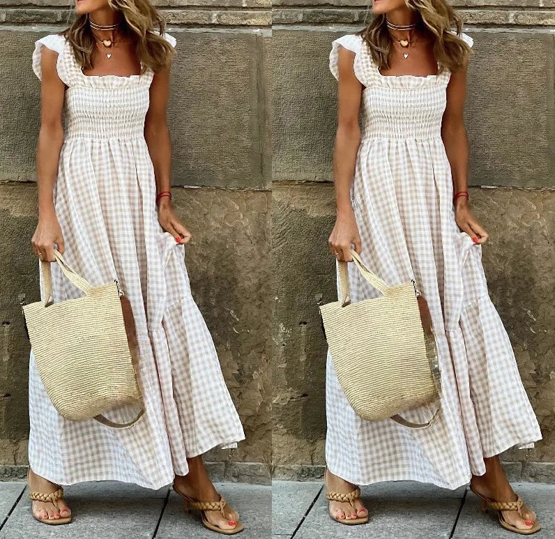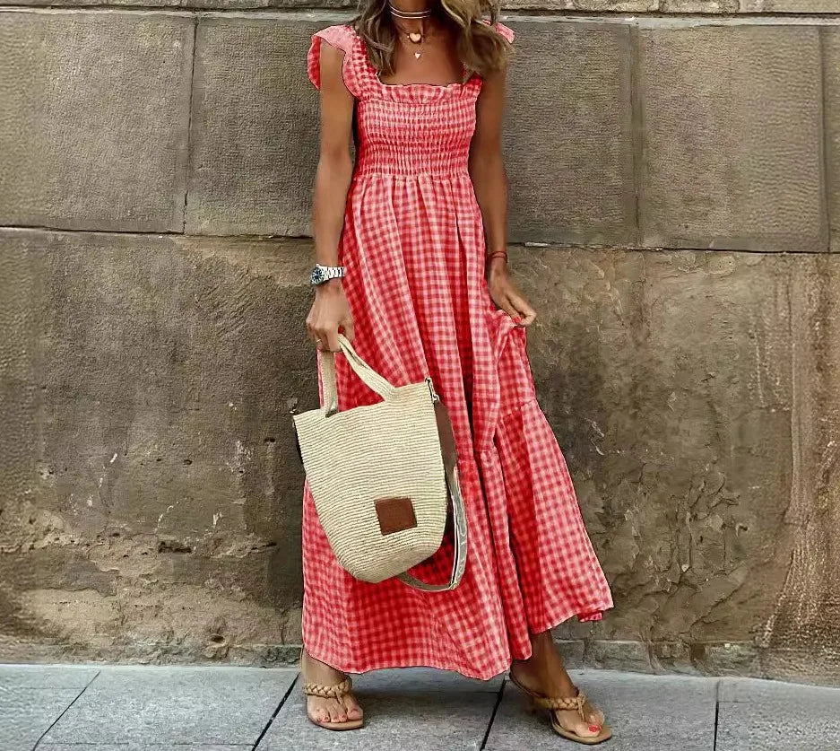 Women’s Retro Plaid Sleeveless Pleated Dress