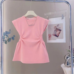 This stylish knee-length dress is the perfect blend of fashion and comfort, designed for teenagers and young girls. Made from a breathable polyester-cotton blend, it ensures a lightweight, airy feel—ideal for warm summer days!