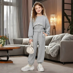 Elevate your teen girl’s wardrobe with this Autumn 3-Piece Sportswear Set, a stylish and comfortable outfit for ages 12–18. Crafted from 100% cotton with a knitted weave, this set includes a solid-color hoodie, sleeveless vest, and jogger pants, accented with delicate lace and sparkling rhinestone details for a chic, sporty look. The breathable, washable fabric ensures all-day comfort and easy care, perfect for school, casual outings, or active play in autumn. With a flattering fit and durable stretch, this set blends fashion and function, making it a must-have for trendy teens.