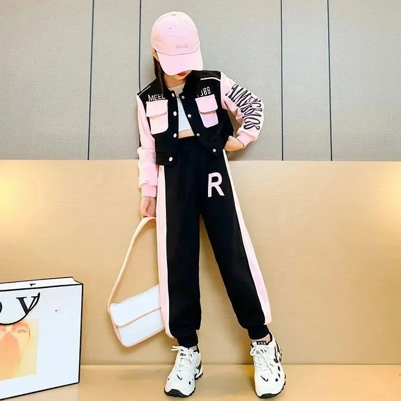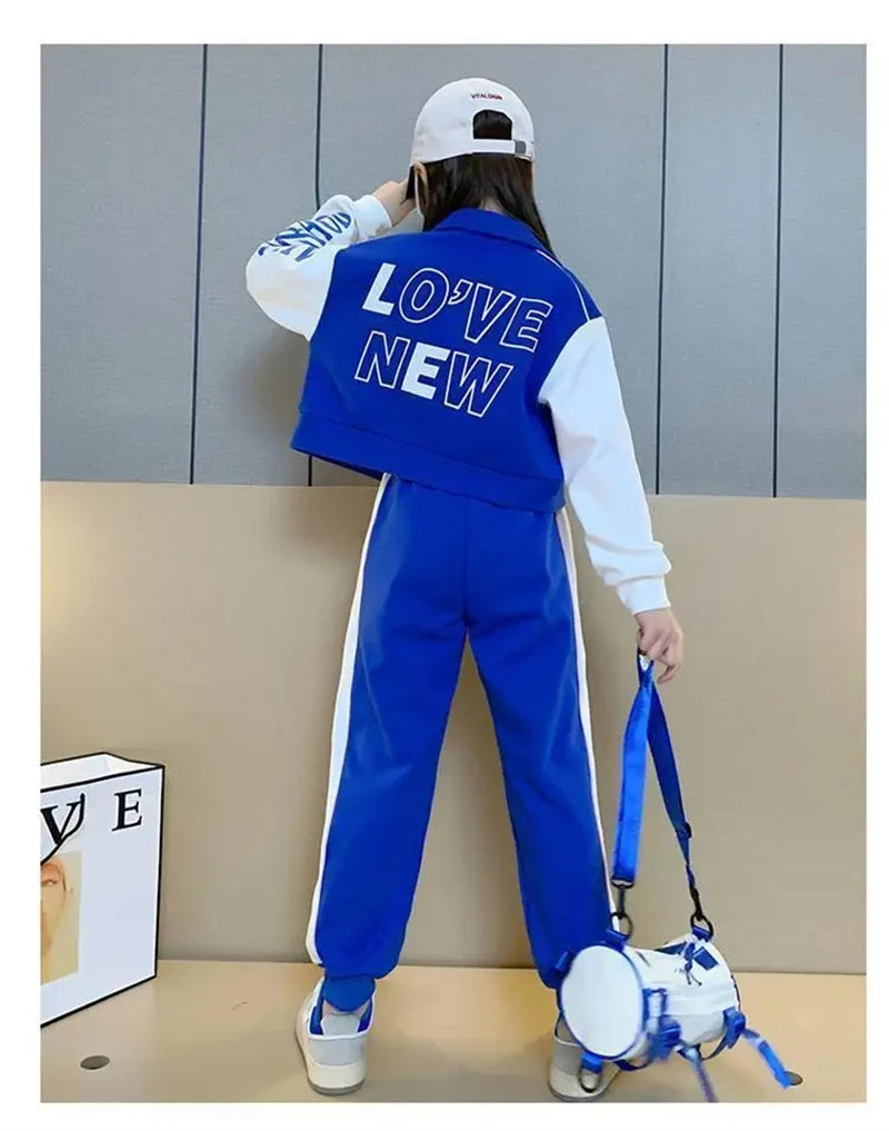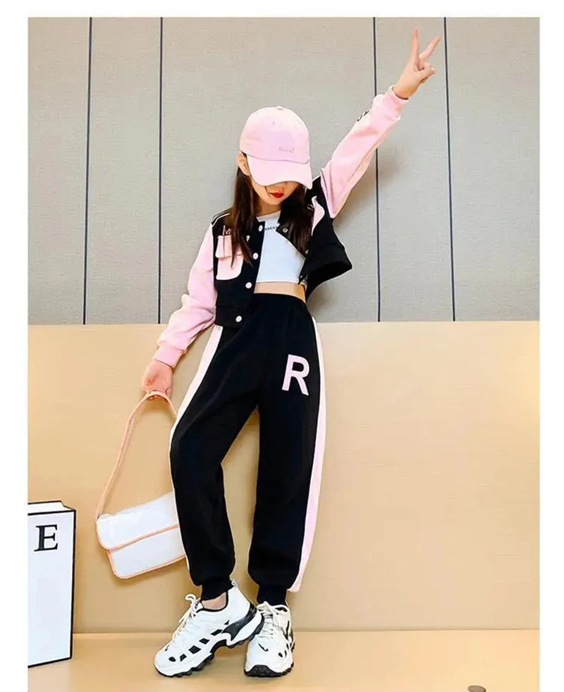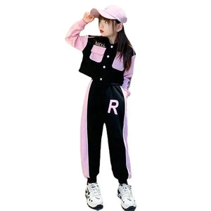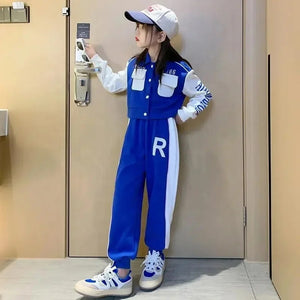 Elevate your girl's active wardrobe with this Korean Style Girls 2-Piece Sports Set, a trendy baseball jacket and pants outfit designed for comfort and style in autumn and beyond. Made from lightweight, 100% polyester, this set features a vibrant letter print pattern and modern sporty silhouette, offering breathable flexibility for school, sports, or casual play. The smooth fabric is durable and easy to wash, ensuring it holds up to daily adventures while keeping her cool and confident. Perfect for playground fun or weekend outings, this set blends fashion and function for girls aged 4-14.