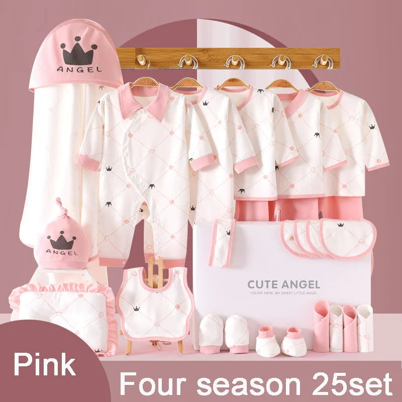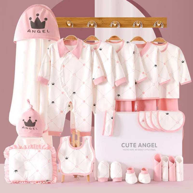 Dress your newborn in ultimate comfort with this Unisex Baby Cotton Clothing Set, a 19/23/25-piece collection designed for infants aged 0–6 months. Crafted from 100% cotton, this breathable set features a stylish geometric pattern, O-neck tops with full sleeves, and open-stitch closures for easy dressing. Perfect for autumn and winter, the soft, fashion-forward outfits ensure your baby stays cozy during nap time, playdates, or family gatherings. Ideal as a thoughtful infant gift (without box), this versatile set combines practicality and modern style, making it a must-have for new parents seeking quality and charm for their little one’s wardrobe.