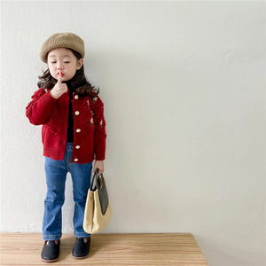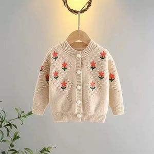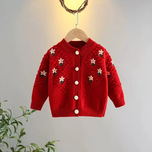 Wrap your girl in sweet warmth with this Girls’ Warm Knitted Cardigan, a cozy crocheted sweater designed for winter comfort. Crafted from a soft acrylic-polyester blend with standard wool-like thickness, this round-neck pullover features full regular sleeves, a cartoon pattern, and embroidered flower details for a cute, breathable look. The button closure adds a touch of charm, while the lightweight, comfortable fabric ensures all-day ease. Perfect for layering over dresses or tees during school, playdates, or family outings, this great-quality sweater blends style and softness for a magical winter wardrobe essential.