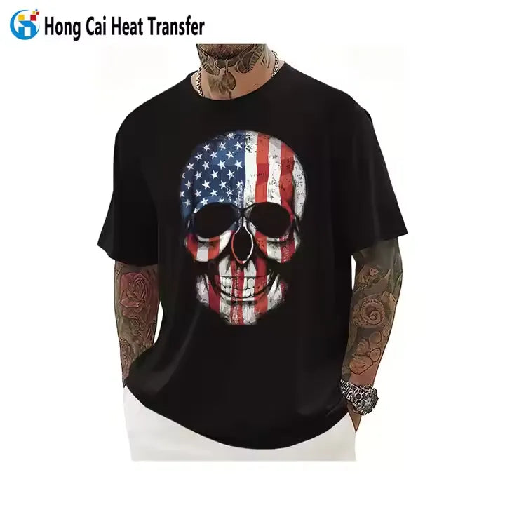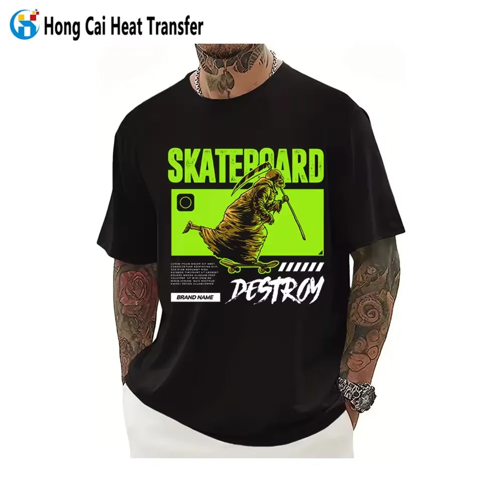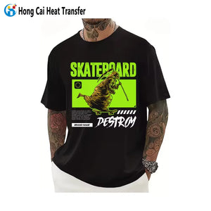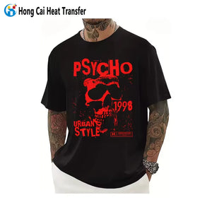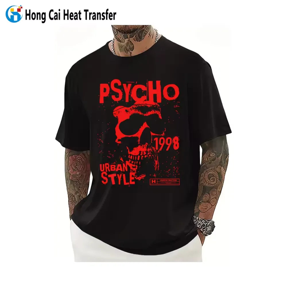 100% Men's heat printed cotton t shirt heat transfer oversize men